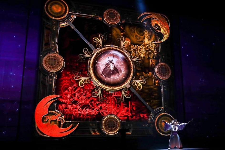 《X 绮幻之境》在舞台设计上下足了功夫。身临剧场,你会看到一个巨大的100米宽的舞台坐落中央,在故事展开的时候它可以任意配合变换效果。