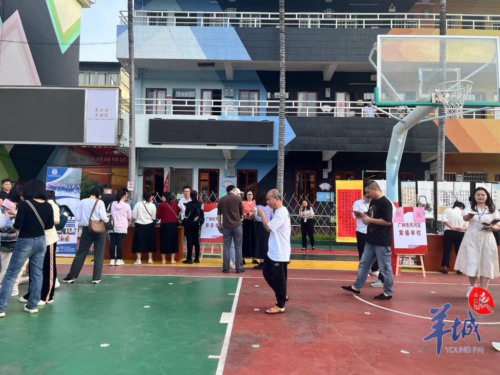 3 月 26 日下午,记者再次来到学校,看到校园内已有不少其他民办学校设置摊位接受家长咨询。记者随机询问了在场的几家学校工作人员,他们表示,如有天河区学籍可以直接转学籍,若为非户籍学生则需要提供居住证、社保、户口本等材料。