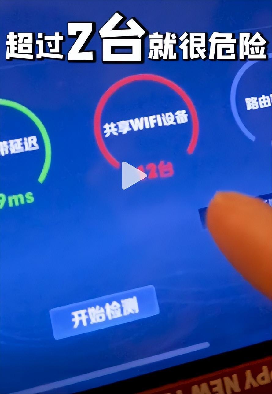 博主随后打开游戏,点开“设置”—“网络”—“诊断”—“开始检测”再次检查监控设备,视频中显示房间内共有12台共享WIFI设备,而超过2台就代表房间内有其他监控设备,细思极恐啊。
