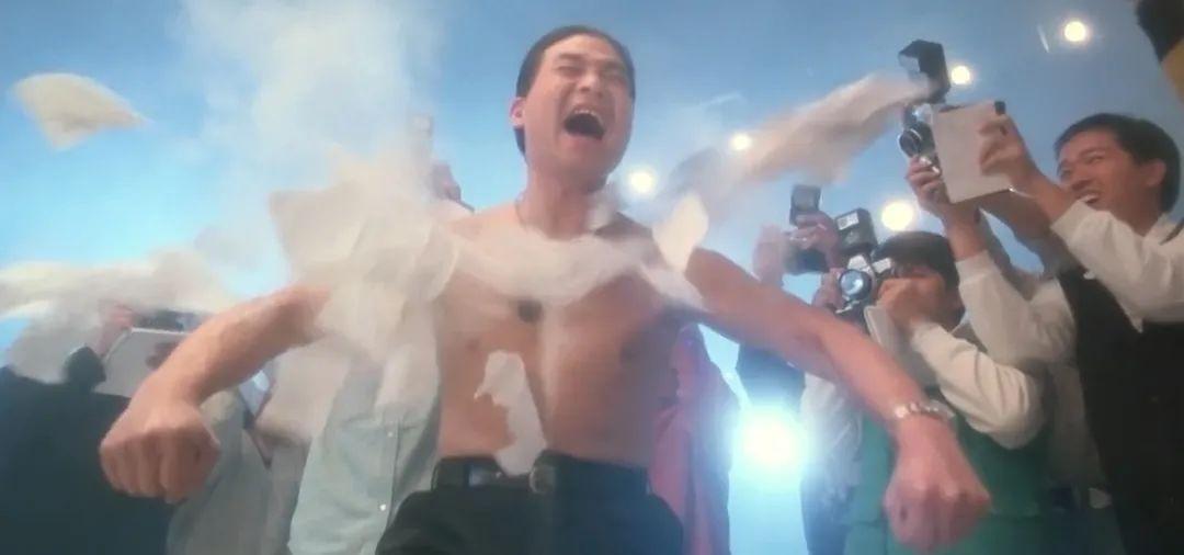 可他却凭借一句过硬的台词,说完台词后帅气的用内力涨爆衣服,摆出一个相当有型的造型,却被大反派林国斌一拳打晕的搞笑表演,让无数影迷记住。