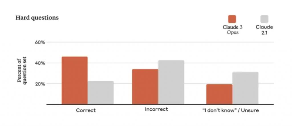 同时,Anthropic 采用了大量复杂的实际问题,以应对当前模型中已知的弱点,并将答案分类为正确答案、错误答案(或虚假答案)以及承认不确定性。