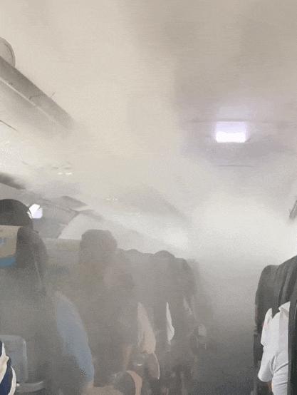 乘务员会告诉你,这是正常的,空调正在启动,强大的冷凝气造成的效果,飞起来就好了。