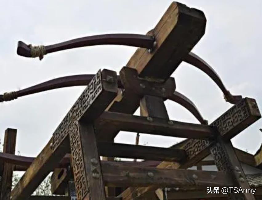 弩,因为外形通常呈现十字状,所以一般都被称为“十字弩”,在古代,弩还分为小型弩、大型弩和连弩,这种兵器要比弓箭更有破坏力,尤其是连弩,可像现代的机枪一样,连续发射,速度快,还能减少人工,射程会超过300米。