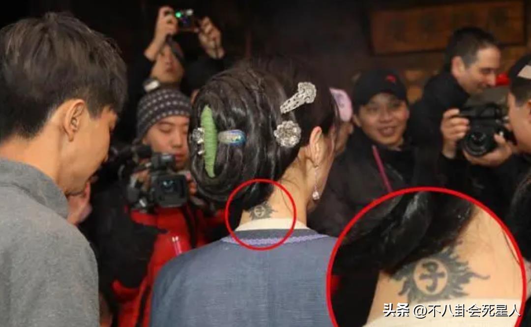 其实近几年,明星在综艺里被打码的情况越来越多,比如纹身。黄圣依参加《浪姐》第一季的时候,脖子后面就被打码了,因为那里纹了一个“子”子,也就是杨子的子,是两人爱情的见证。