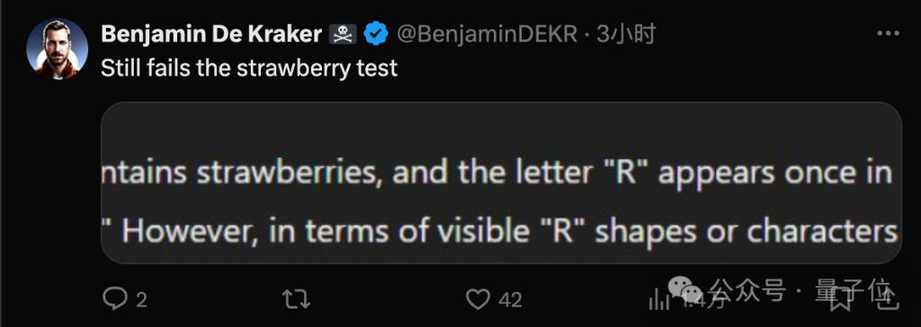 目前已知能较稳定做对的一个问法是 "How many ‘ r ’ s are there in the word Strawberry?",中文版还没有发现。