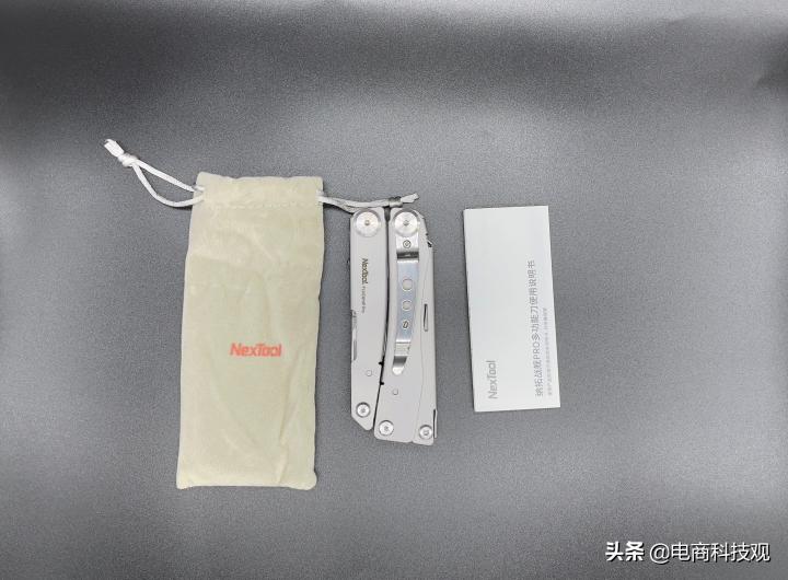 包装内有多功能钳一把、说明书一本,绳口收纳袋一个,以及黑色尼龙钳套。