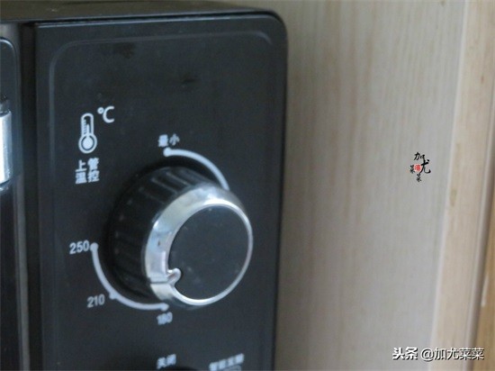 2、烤箱上下管调210度,时间调40分钟,先预热2分钟,再放番薯进烤箱。