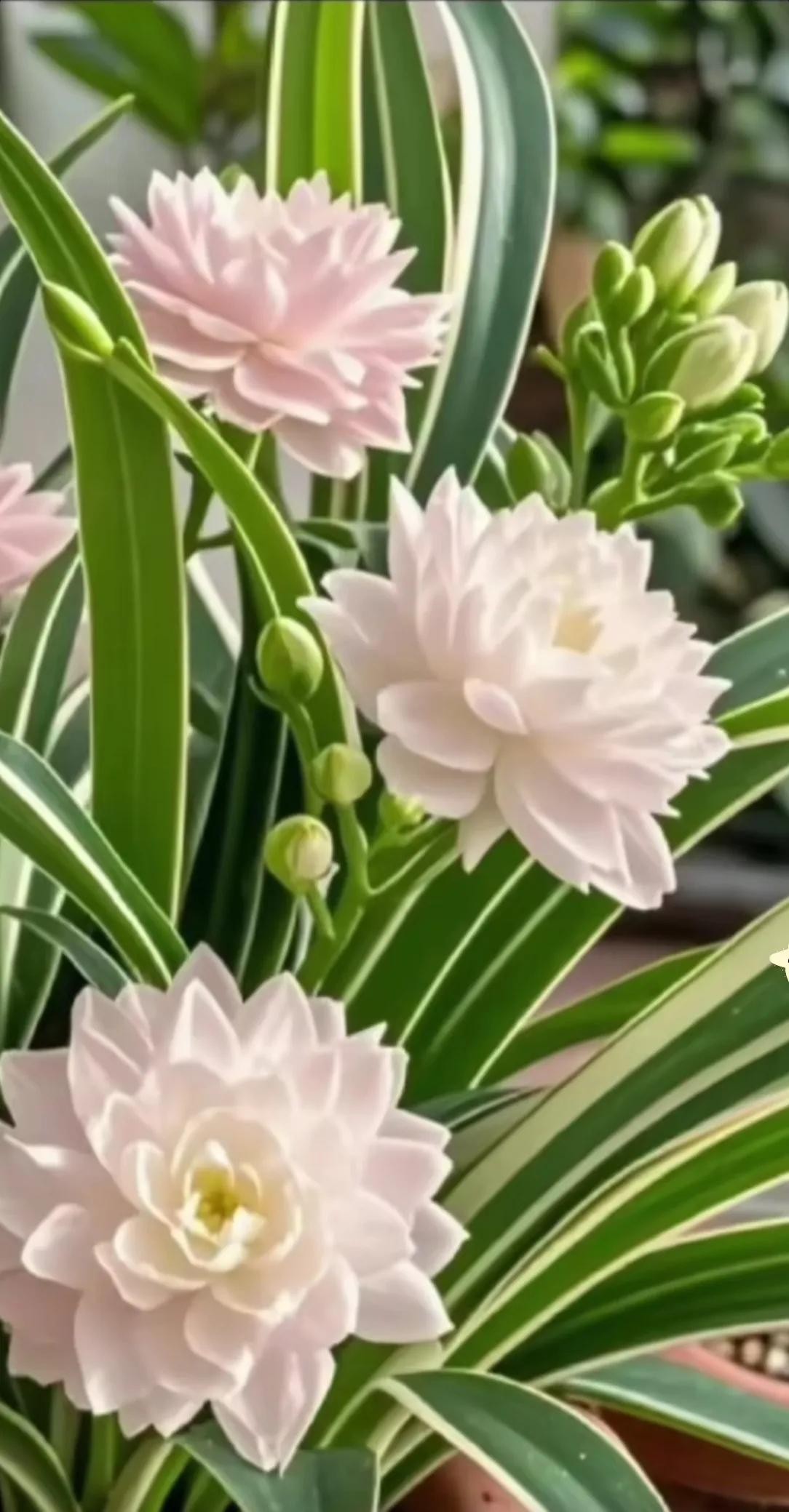 金边吊兰以其细长的叶子和边缘的金线而闻名。它经常被放置在窗台和客厅里,为家庭增添一丝清新的绿色。这个新品种将这种美升华到了一个新的高度。当它绽放花朵时,它似乎是大自然的顶级画家。它在绿色的画布上精心描绘了一幅梦幻画卷。