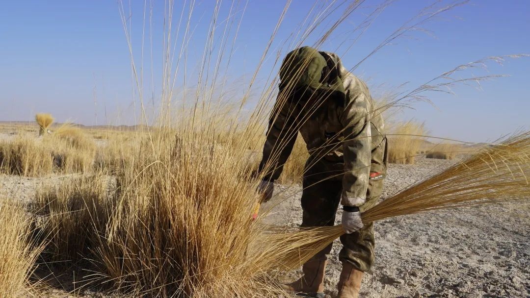 近日,记者走进肃南县明花乡南沟村,在安吉新的草场上,工人们正在收割芨芨草,在明花乡的戈壁草滩上,最多的就是这种草,冬天农闲时,农民们出门顺手割一把,转手就能变成钱。