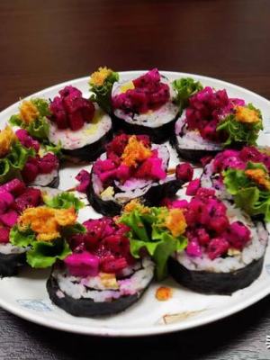 将青稞米和糯米按照一定比例混合蒸煮后,用来做青稞寿司,再根据各自口味搭配其他食材,青稞是什么粮食,不仅颜值高,而且营养颜色好。