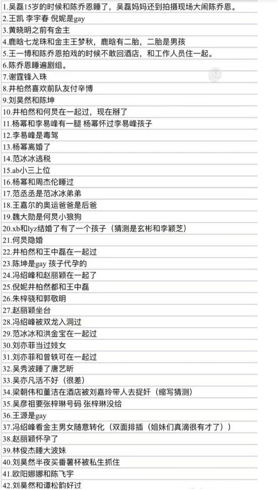 其中牵扯的演员艺人就高达几百人,但大多数人都有辟谣不好的事件,所以说“421事件”的真实性大家也没必要认真,理性吃瓜,看看娱乐一下就好了。