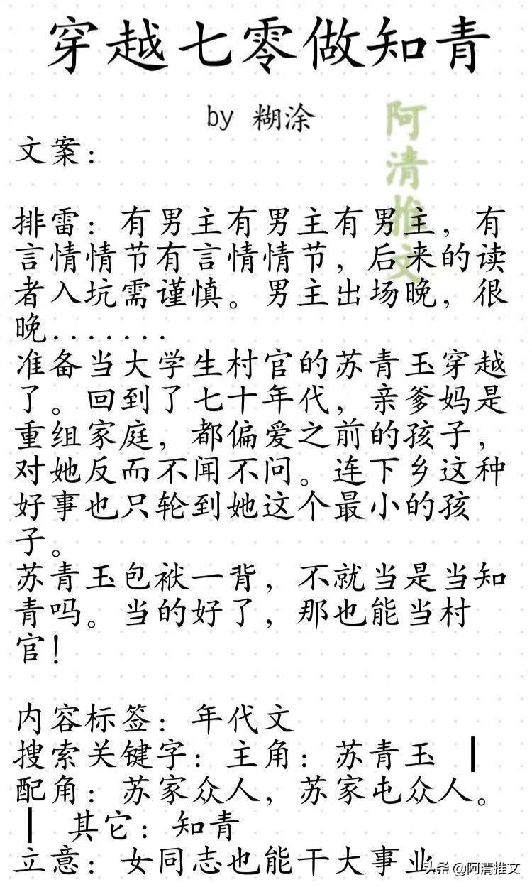1.《穿越七零做知青》这本的女主从政的,人设描写的好好,扶贫和发展真的环环相扣,太厉害了![作揖]