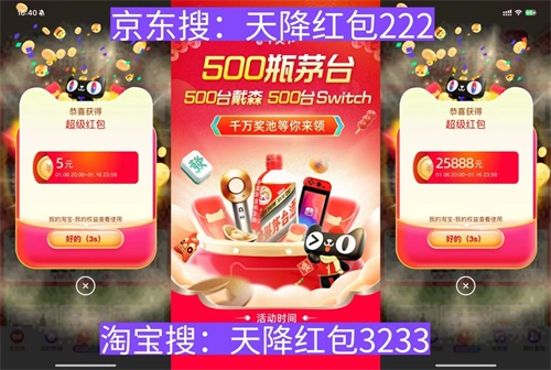 首先,划重点!2025年京东的年货节红包口令是「天降红包222 」淘宝和天猫的年货节红包口令是「天降红包3233」,这两个口令,发放力度非常大,全周期加码,快去试试手气,还有iphone16免单!