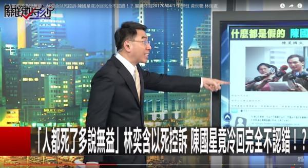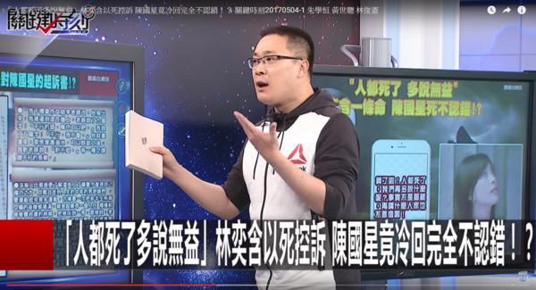 《关键时刻》当家主持人刘宝杰4日在节目上探讨才女作家林奕含之死,其中谈到被指就是书中「狼师」的陈星(本名陈国星),来宾朱学恒直接痛批陈星「大学、研究所学历都假的」,让他也忍不住跟着爆气:「我家2个小朋友都上过他(陈星)的课!」
