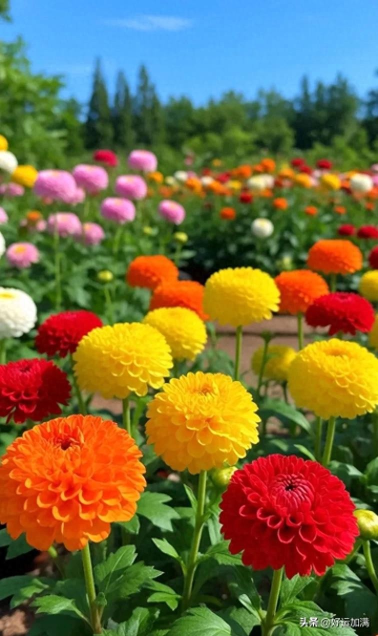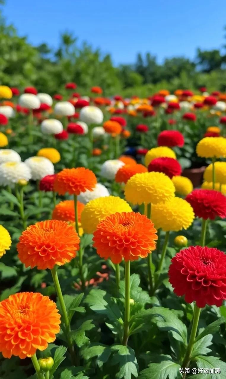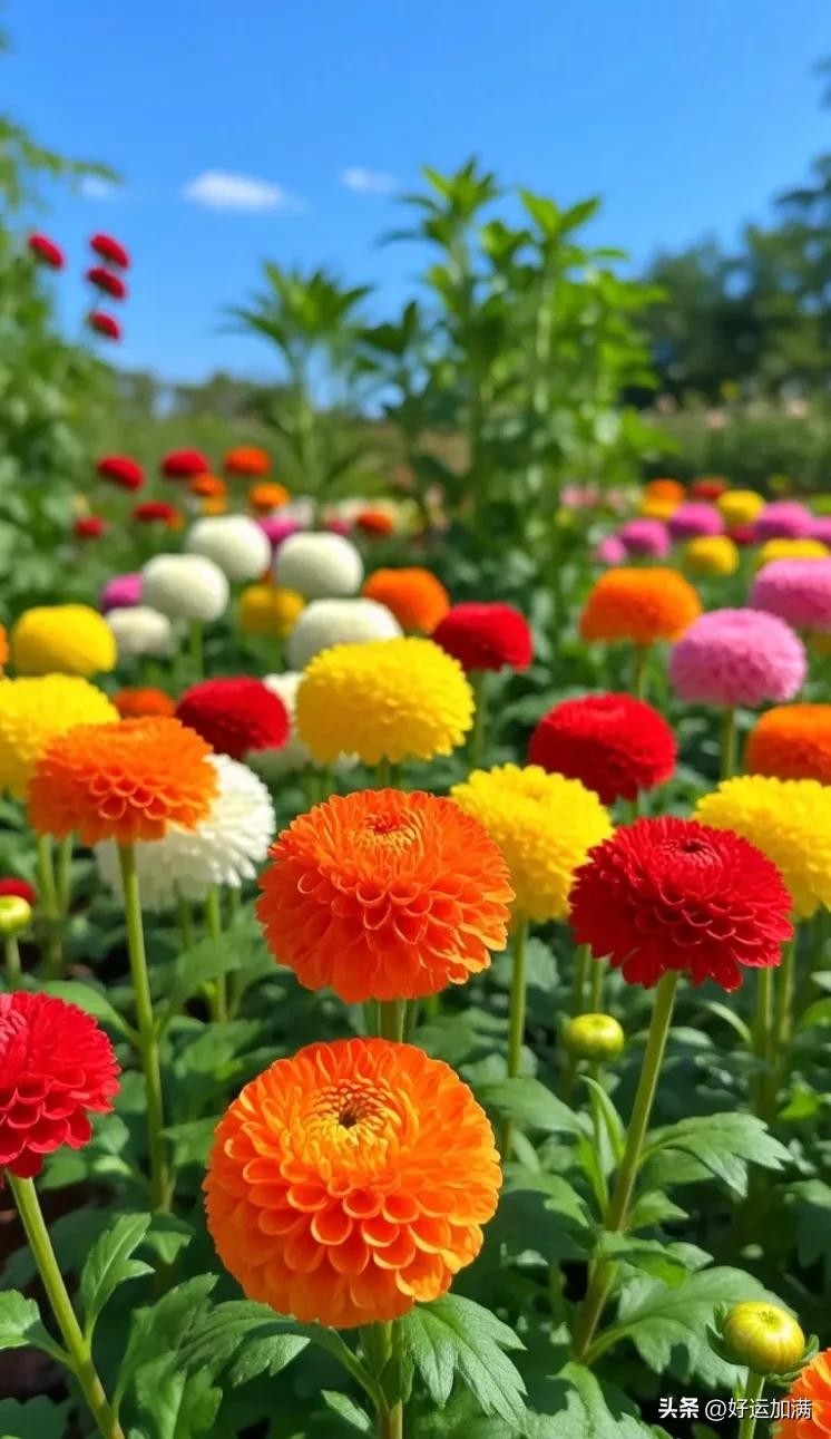 八月的周末,走进植物园,五彩斑斓的乒乓菊惊艳绽放。那鲜艳的橙色、明快的黄色与炽热的红色花瓣,宛如灵动的火焰,在阳光下肆意闪耀。背景中,翠绿的枝叶相互交织,形成了一片生机勃勃的屏障,与五彩斑斓的乒乓菊相互映衬,仿佛是大自然用最细腻的笔触,勾勒出一幅绝美的画卷,让人沉醉其中,忘却了尘世的喧嚣与烦恼。