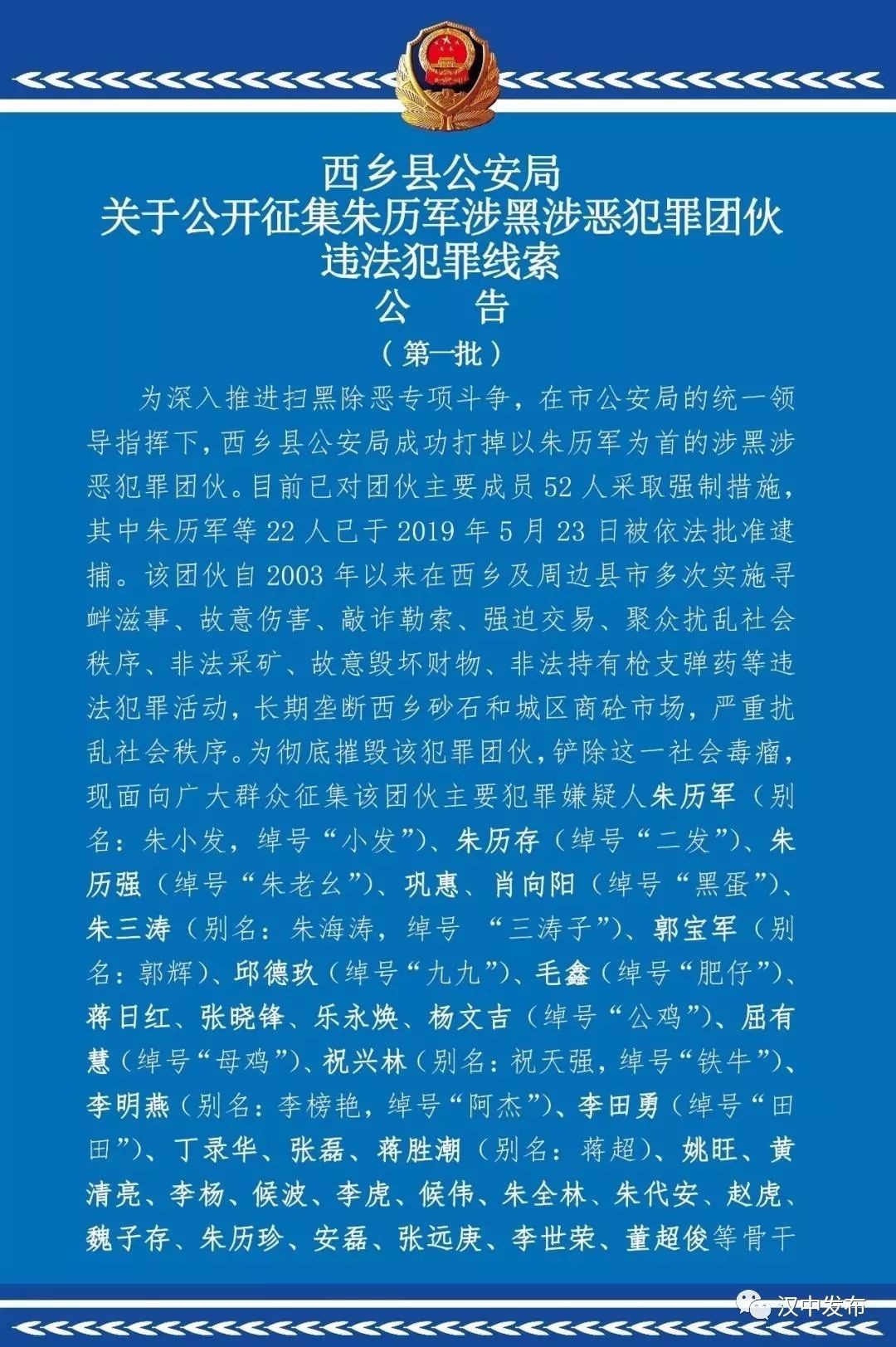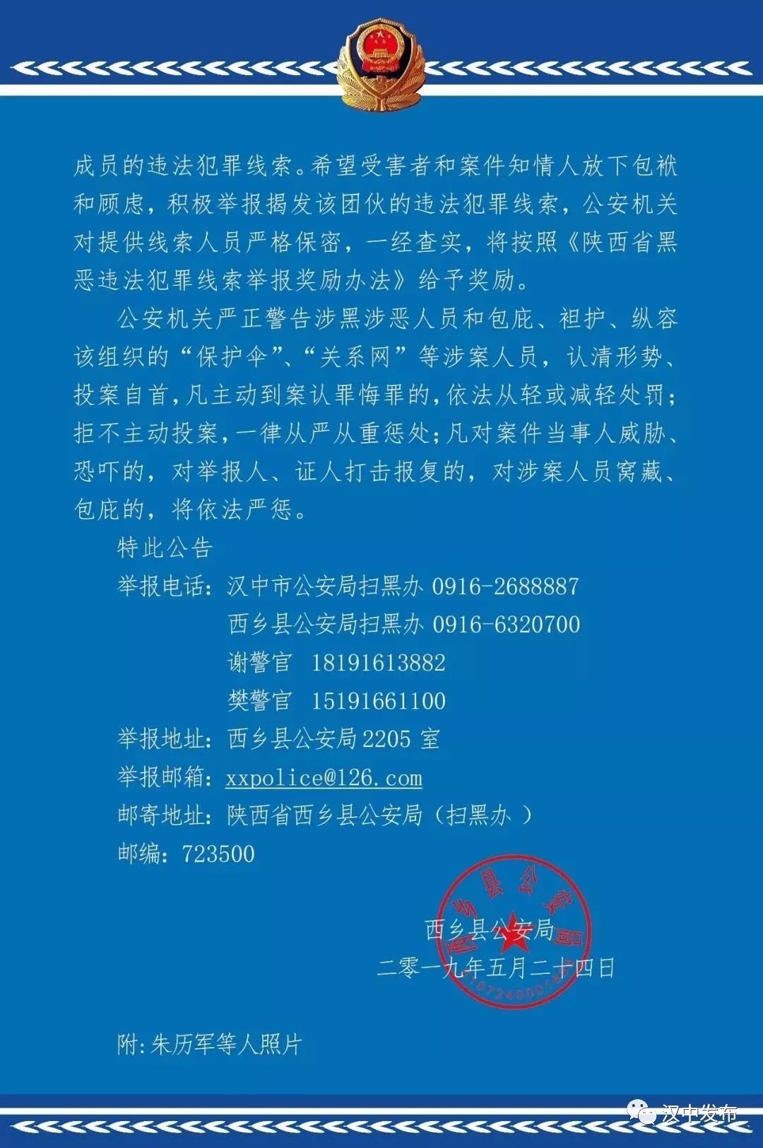 【关注】扫黑除恶·汉中在行动|快来检举“朱小发”等人违法犯罪线索