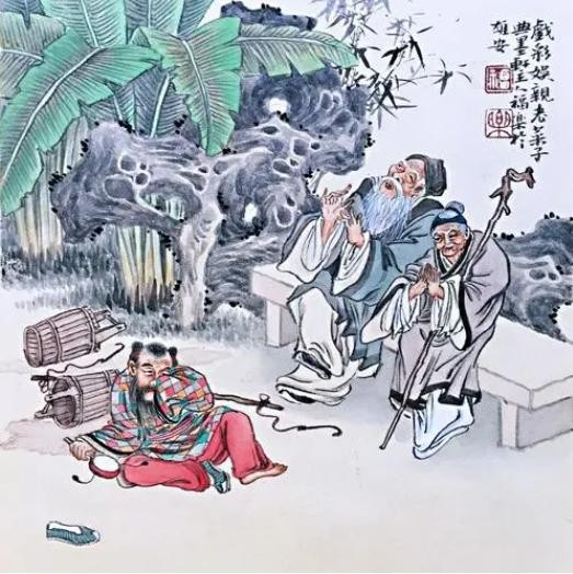 这便是老莱子戏彩娱亲的故事,一个心中有大孝心的人,穿上了让旁人笑话的彩色衣服,却只为博得父母的一笑,便已知足。