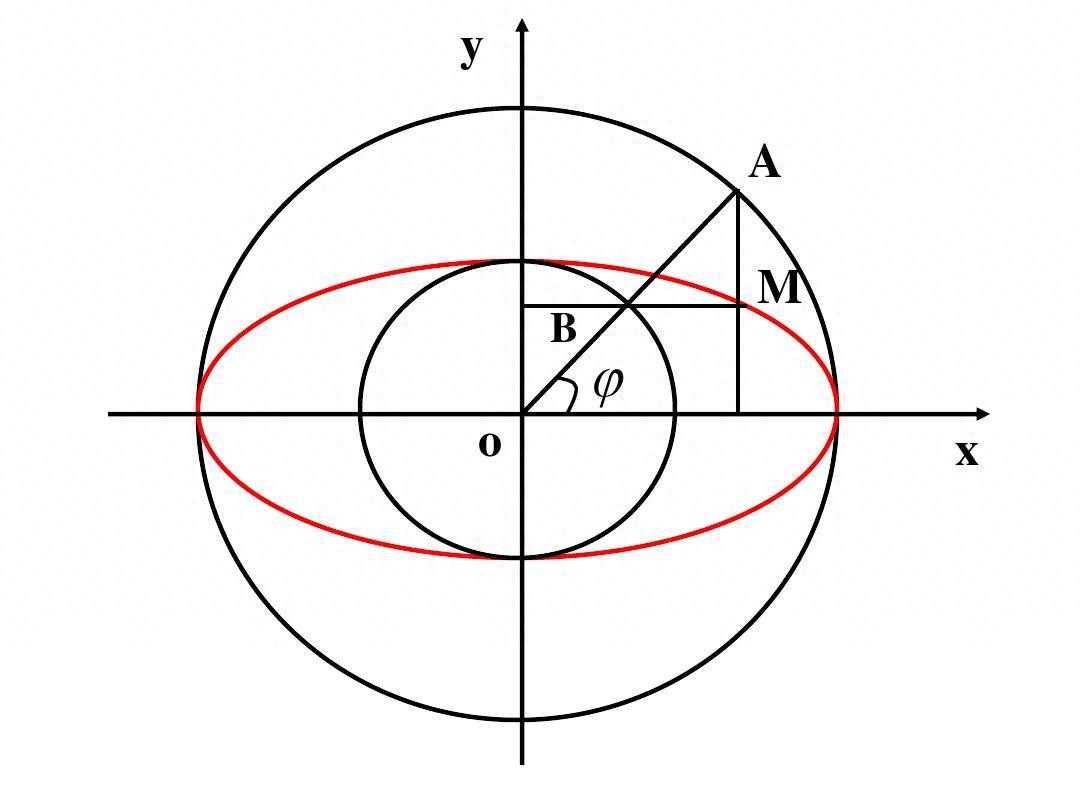 直线和圆的参数有着具体的几何意义,而椭圆参数的几何意义比较特殊,这里我必须用图像说明一下。