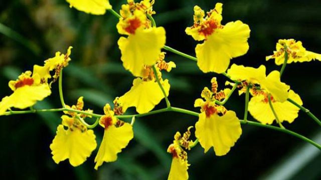 跳舞兰也叫文心兰,一个个花朵就像小蝴蝶一样,一串串。或者像翩翩起舞的穿着舞裙的小仙子。