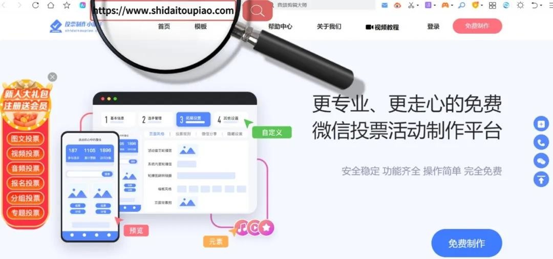投票制作小助手是一种便捷高效的投票活动管理工具,能够帮助用户快速创建和管理投票活动,实现数据的收集和分析。其免费使用、操作简单易上手,功能强大且专业,响应速度极快,系统安全稳定流畅。能够承受大量用户同时投票,不会出现卡顿或崩溃的情况,还提供详细的投票数据分析。