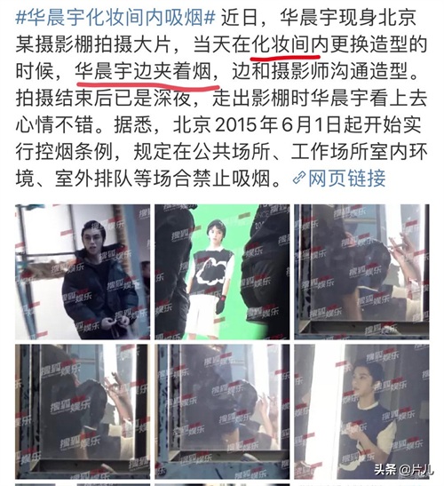 纵观娱乐圈吸烟的明星确实很多,不单单是华晨宇被拍到多次吸烟,而且姚晨、赵薇,甚至连王源也被拍到过吸烟。跟普通人吸烟不同,很多明星被拍到公共场合吸烟后,必然会引起了轩然大波,一是的确给粉丝做了不好的示范、二是公共场所吸烟确实有碍他人健康。此次华晨宇被拍到吸烟,必然也登上了当日的“热搜”。