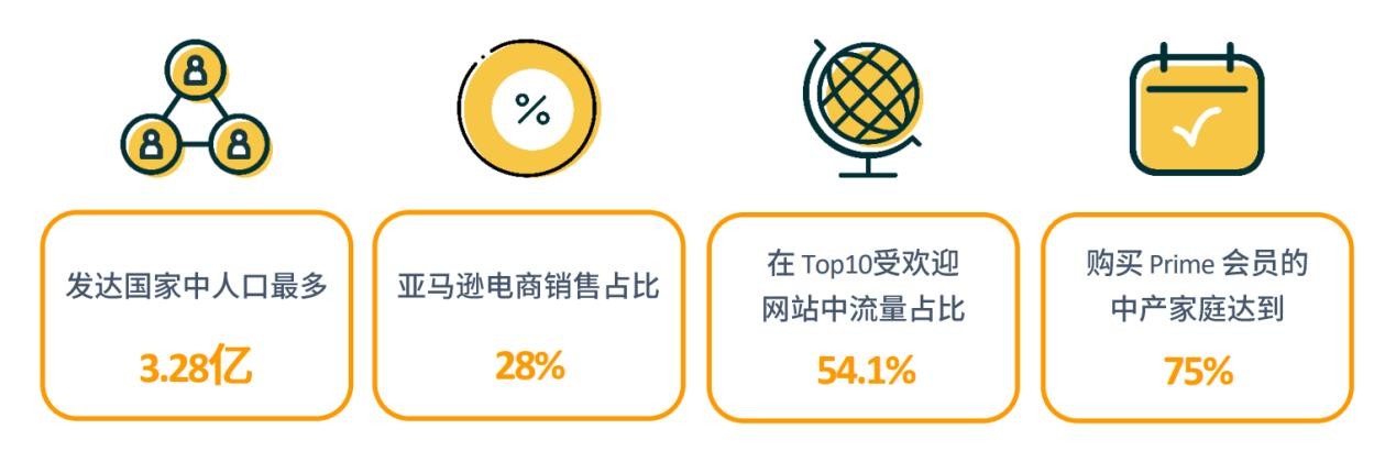 在发达国家中,美国人口最多,也是人口增长最快、文化最为多元的国家。作为亚马逊电商诞生的地方,在美国Amazon在最受欢迎的Top10网站中排名第一,平均每月流量约17.8亿,所占流量份额达54%。在电商领域,亚马逊的份额仍在持续增长,2017年占据了美国电商销售总额的28%。