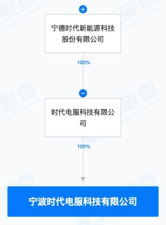 天眼查App显示,近日,宁波时代电服科技有限公司成立,法定代表人为冯力,注册资本1000万元,经营范围含新能源汽车整车销售、新能源汽车换电设施销售、新能源汽车电附件销售、智能控制系统集成等。股权全景穿透图显示,该公司由时代电服科技有限公司全资持股,后者为宁德时代全资子公司。