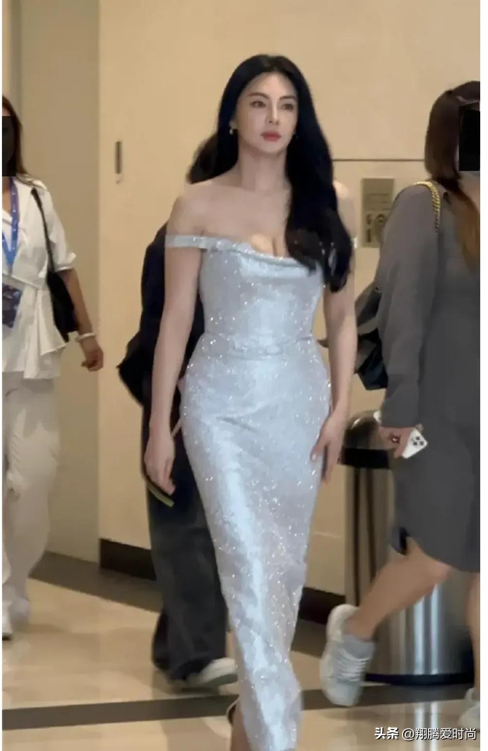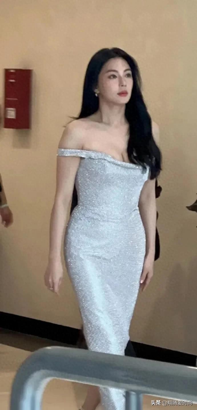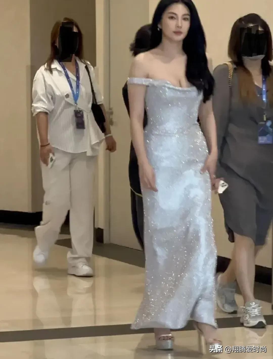 那件银色抹胸裙,紧紧贴合张雨绮的曼妙身姿,将她的苗条身段展现得淋漓尽致。纤细的腰线、流畅的身材曲线,每一个细节都透露出无与伦比的优雅。张雨绮的美丽不仅仅在于外表,更在于那份由内而外的气质。她脚踩银色高跟凉鞋,步伐自信而从容,仿佛每一步都在书写着自己的时尚传奇。