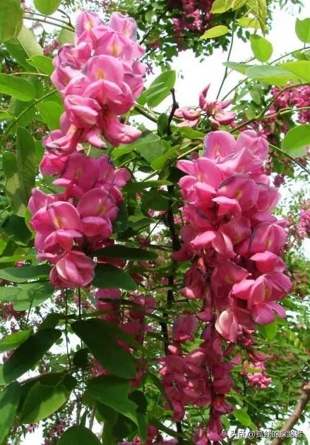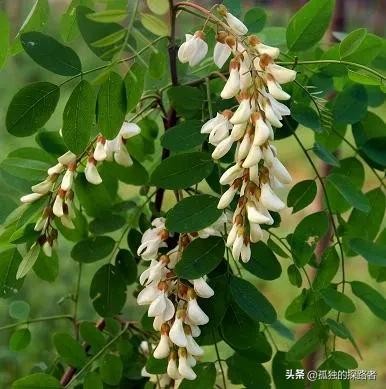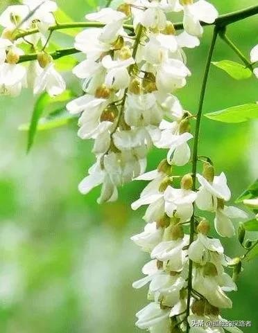 一棵棵槐花树像一把撑开的大伞。下过雨之后的空气弥漫着槐花的芬芳。在碧绿的叶子的衬托下,白色的槐花显得分外的美丽,一枝枝槐花,像一串串诱人的葡萄,