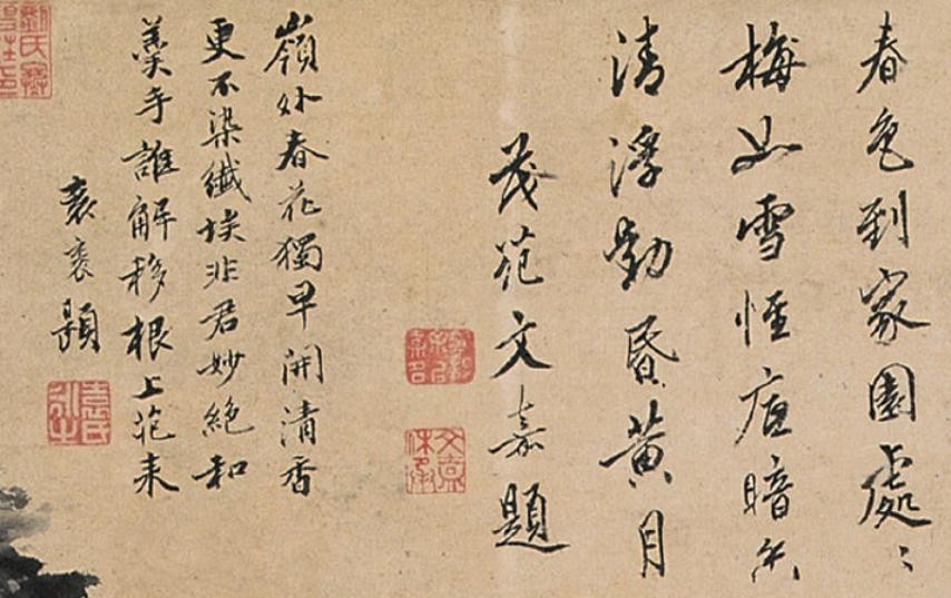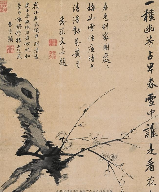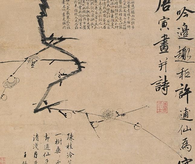 同样唐伯虎也喜欢写一些诗句在绘画之中,下面这一张《梅花》就是他典型的诗画结合的代表作品。