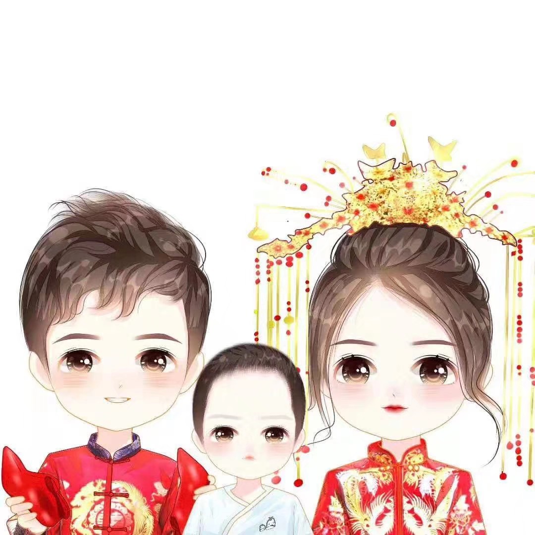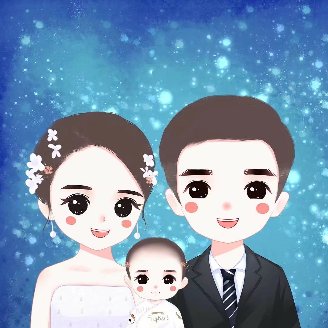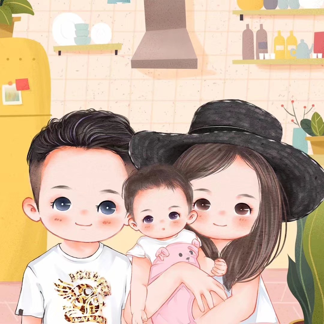 2020最火爆手绘头像,一家三口全家福微信头像。