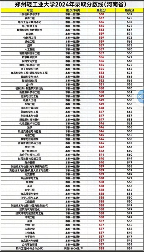 以下是其2024年本科一批次理科各专业在河南省内录取分数线及省位次,供大家参考了解。