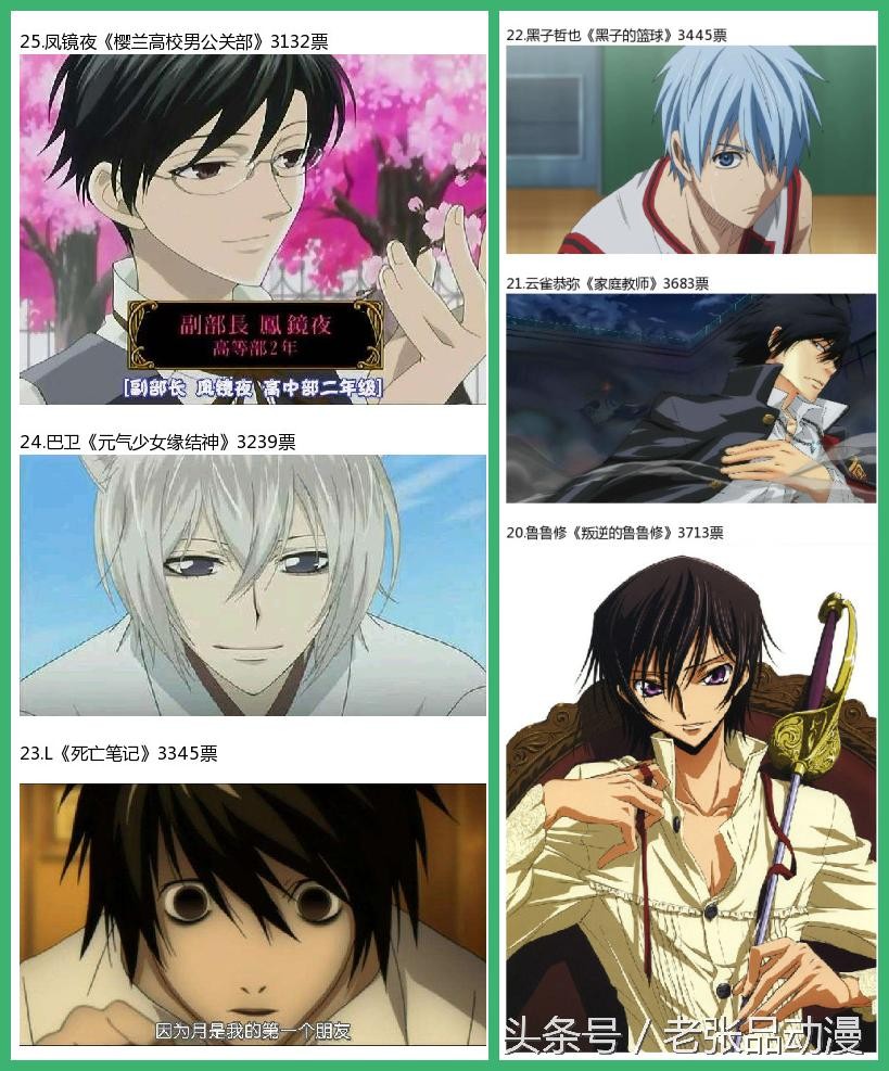 20到25名:鲁鲁修--云雀恭弥--黑子哲也--L--巴卫--凤镜夜
