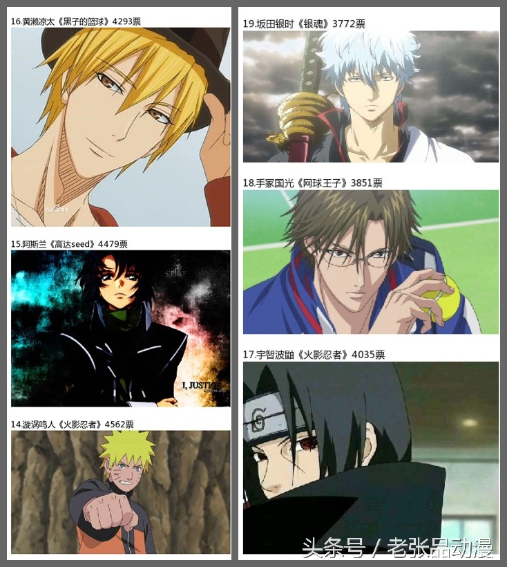 14到19:旋涡鸣人--阿斯兰--黄濑凉太--宇智波鼬--手冢国光--坂田银时