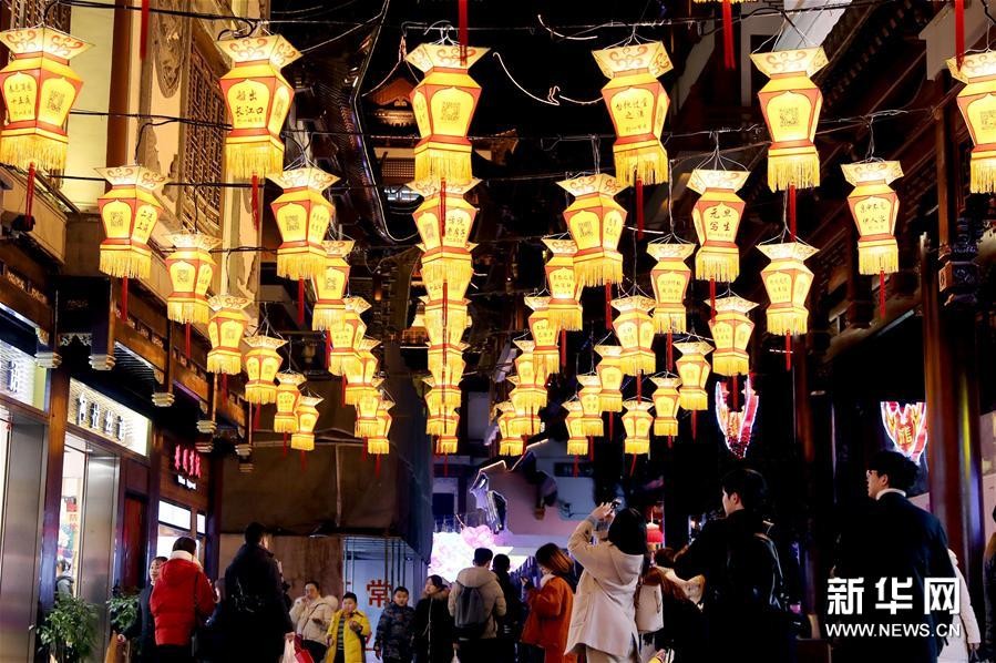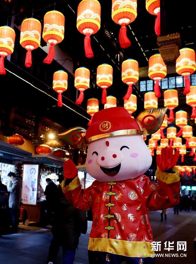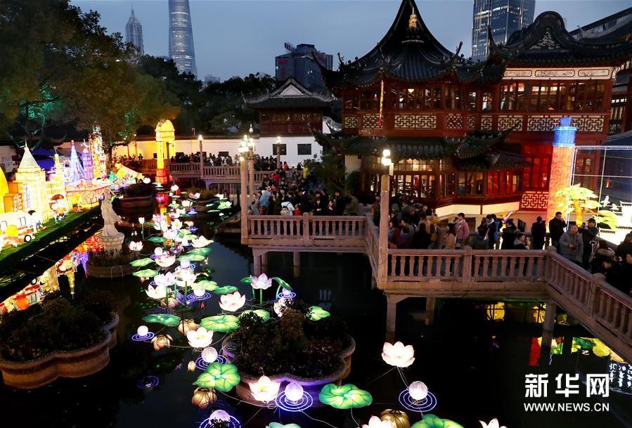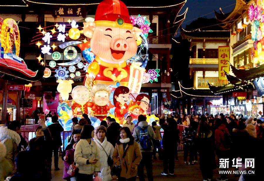 1月21日晚,2019年豫园新春民俗艺术灯会正式亮灯。本届灯会将持续至2月22日,为期33天,预计将迎来数百万海内外游客赏灯迎新。(新华社记者 刘颖 摄)