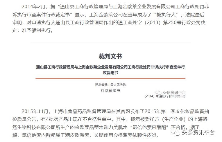 另外值得关注的是,在谢玲的投资下,还有一家上海金欧莱企业管理有限公司,这家公司就是微商品牌“金欧莱”的经营主体。公开资料显示,香港金欧莱化妆品有限公司是一家集研发、生产、销售为一体的专业化妆品公司,中国营销总部设在上海,谢玲是该品牌的创始人。关于金欧莱,头条资讯平台曾在《慈航新零售是何来历,花仙伊蔓雪域酵素有何底气宣传包治百病?》和《付爱宝创始人退出后另起炉灶,悦人优品与芝淘商城孰优孰劣?》的调查文章中有过提及,这里不多做赘述。