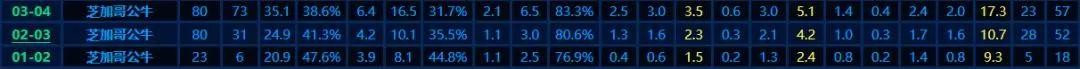 01-02赛季至03-04赛季赛季期间,经历了新秀墙后,克劳福德慢慢将其得分方面的天赋发挥,公牛这三年里,克劳福德场均12.4分2.4篮板3.9助攻,其球队地位也随之水涨船高。在03-04赛季,克劳福德打出公牛队内得分王的表现,得分由上赛季的场均10.7分暴涨到17.3分,还能拿到3.5篮板(生涯最高)5.1助攻(生涯最高)的不错数据,甚至在常规赛的最后第三场比赛中,克劳福德对阵多伦多猛龙队中轰下了50分。这样的表现伴随而来的是首发73场,场均16.5的出手权,但大量的出手下,克劳福德的三分命中率仅为31.7%,真实命中率48.6%。总结:这样的蜕变让克劳福德成为NBA联盟里年轻后卫中的佼佼者,但他个人篮球基础动作有待加强、得分手段单一、投篮稳定性差、防守较弱等弱点也一一体现。