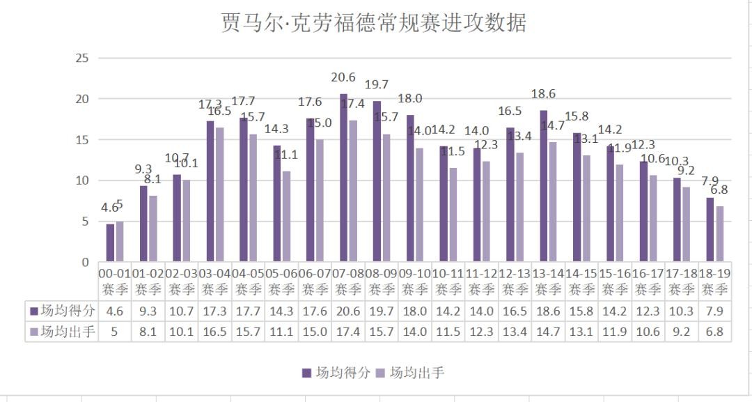 本文将对贾马尔·克劳福德在常规赛和季后赛中的进攻表现、防守表现以及攻防效率等进行分析,去探究从未进过全明星的贾马尔克劳福德是如何仅用“进攻”在联盟立足20年的。