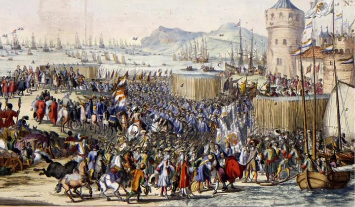1688年11月5日,威廉三世率领荷兰军队登陆英格兰南部。他的军队逐渐壮大,詹姆斯二世的军队支持者逐渐减少。