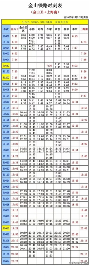 但是1月5日调图后,从上海南站回金山的末班车时间提前到了19:35,提前了两个半小时。