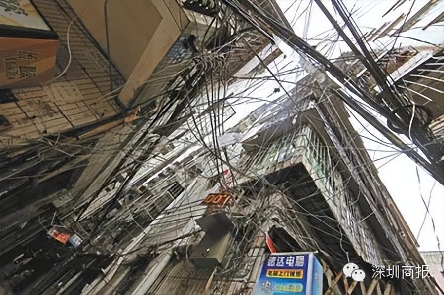白石洲城中村内,电线、网线错综复杂 图源:深圳商报