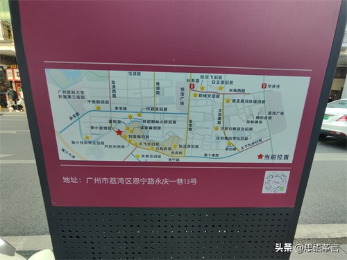 从荔枝湾向西南方向,沿街继续行进,导航到永庆坊。