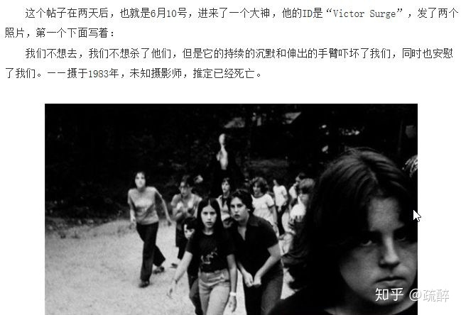 在原文中,Victor Surge只发了两张照片,每一张下都有文字说明,而这两张照片也在日后成了瘦长鬼影的源头。