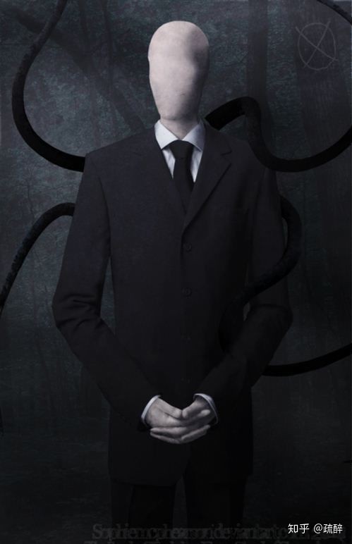时至今日,瘦长鬼影的形象便大体固定成了:有着朦胧雾气的夜晚,森林中,身穿一身黑西装,浑身又长又瘦,没有五官的高大鬼影,牵着一个小孩,面向正在注视它形象的你,或者留给你一个带着孩子远去的背影。