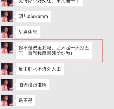 翟欣欣却说:“追我可以,每天给我转5万块钱。”