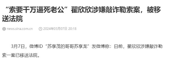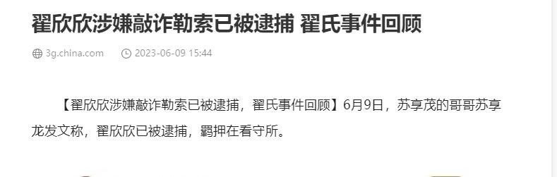 2023 年 3 月 31 日,朝阳区人民法院一审判决翟欣欣退还苏享茂家属现金、汽车及撤销房产所有权,苏享茂哥哥称翟欣欣被抓进看守所的时候,提出私了的请求,被家里人拒绝了等待她的是面临 10 年以上刑期及巨大金额赔偿。