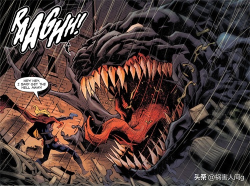 结果,他遇到了受到黑暗神纳尔影响,而发狂的毒液共生体。毒液共生体摘掉了他的一只眼球。
