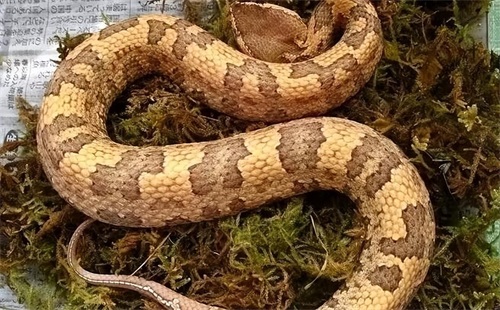 尽管这种蛇的毒性并不是很强,主要以血循毒为主,排毒量也比较小,一般来说不致命。但还是要及时就医。二、越南烙铁头越南烙铁头相较之下比台湾山烙铁头略为粗短一些。它们的体型较短粗,身长一般在60-80厘米之间。