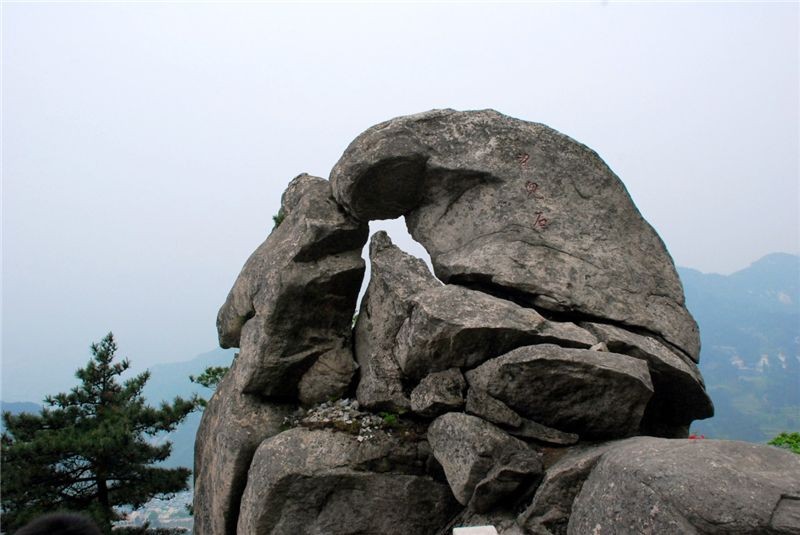 天梭石位于龟头的的颈部,是登龟头的必经之处。它极像一把织布的梭子,又像一根挑谷捆的冲担。见此景,你自然就想到“鬼斧神工”这个词。