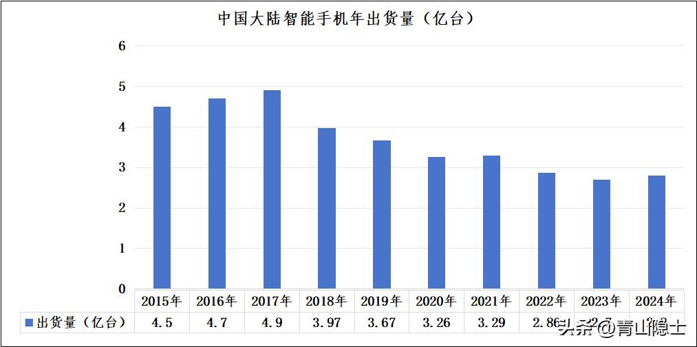 从2016年至今,中国大陆智能手机年出货量基本上和面板价格的走势同步;2017年,中国大陆智能手机年出货量达到历史高点4.9亿部;2021年,中国大陆智能手机年出货量经历了短暂的“同比上涨”。
